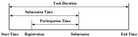 Solvers’ participation in crowdsourcing contests is a dynamic random process. The dynamic random process is similar to a competitive auction. The longer the auction is open, the more bidders can be included in the auction [48]. In crowdsourcing contests, the longer the task is released, the more solvers will see the tasks posted and participate, thereby increasing the number of submissions [5,20]. At the same time, the longer the task duration, the more solvers will be able to participate, because most solvers use their spare time to participate in crowdsourcing contests [49]. In terms of task quality, solvers cannot solve a task in a limited time. Many solvers are more willing to participate in crowdsourcing contests with longer task duration. As such, short task duration is not conducive to seekers who desire high-quality solutions.