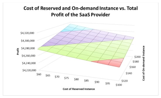Cost of Reserved Instance and On-demand Instance vs. Total Profit of SaaS Provider.