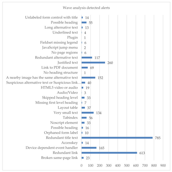 Alerts that do not comply with WCAG 2.1 detected in the analyzed sample. Source: own elaboration from Wave [54].
