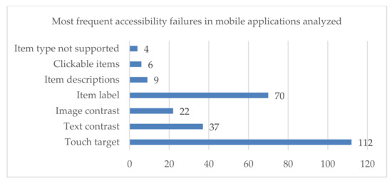 Total analyzed mobile app accessibility failures. Source: own elaboration from Google´s Accessibility Scanner [41].