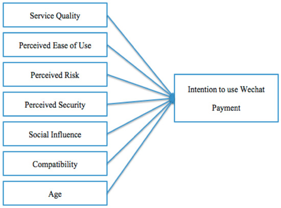 Recently, many scholars have noticed that WeChat payment is widely used in China [11,12,13]. WeChat is China’s multi-purpose social media platform. Its mobile payment application, developed by Tencent, has been available since March 2014 [14]. As of 2019, the number of users is more than 1.2 million, and the average daily number of payment transactions exceeds 1 billion [15]. A huge number of electronic businesses, retailers in electronic commercial platforms, municipal services, peer-exchange, and instant messaging apps are relying on it for payment [16]. Compared with other digital payment platforms, WeChat is also is the most popular social network platform in China [17]. It is closer to the daily life of users, so it has a better user penetration and transaction rate. Therefore, investigating the underlying factors of mobile payment is important to give insight into the successful development of electronic business and commercial platforms. Nevertheless, most of the literature has made use of equation models to test the model structure based on the model fit data and to determine the correlation between each variable in relation to certain beliefs about the effects [18]. The major aim of this research is to determine the overall fit of the model and the relative contribution of each underlying factor in terms of the total variance explained [19], so as to predict and explain how much the intention to use digital payment can be explained by the underlying factors proposed in this study.
