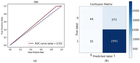 (a) AUROC curve of the CNN-based model and (b) the confusion matrix of proposed CNN-based model.