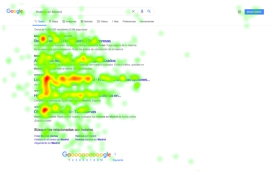 - Marcos, M.; González-Caro, C. Comportamiento de los usuarios en la página de resultados de los buscadores. Un estudio basado en eye tracking. Prof. Inf. 2010, 19, 348–358. [Google Scholar] [CrossRef][Green Version]