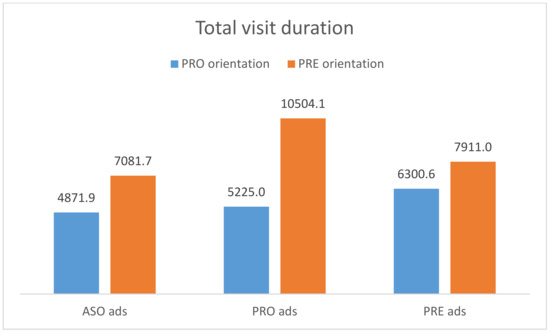 For the PRE condition, it is interesting to note that the concentration of fixation on the organic results was much higher than for the ASO and PRO conditions. This may be due to the fact that, in this condition, the first organic result referred to “30 hotels in the centre of Madrid”, which may have positively fed the rejection of users towards ads; they may have trusted more in this organic result and therefore shown higher fixation. As in the PRO condition, it can be seen that the set of ads for the PRE condition received greater fixation than the set of ads for the ASO condition (see Figure 7). This could be also explained by the fact that prevention-oriented subjects are more likely to pay attention to messages that fit their orientation [8,18]. A summary of the results is presented below.
