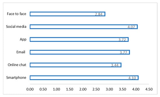 Communication channels used with tourism companies (Likert scale from 1 to 5).