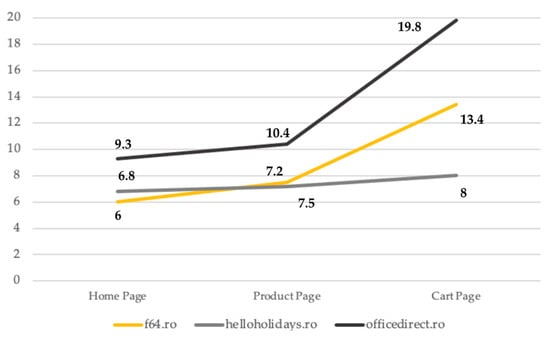 Three out of 16 retailers expose the increment of the number of seconds as the consumer draws near the checkout and the shopping cart page is the one that loads the slowest. Two of them, f64.ro and officedirect.ro, presents substantial increases (Figure 2).