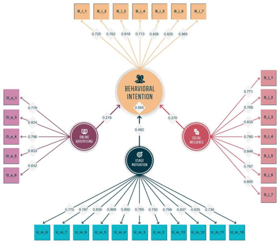 | Construct | Behavioral Intention | Online Advertising | Social Influence | Usage Motivation |
