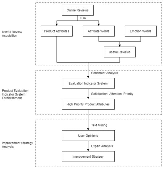 In this section, we introduce the main steps of the proposed method to systematically analyze online user reviews and provide improvement ideas for products. The overall framework of the method is shown in Figure 1, which mainly contains three steps: