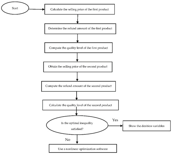 To gain more insight into the analytical results shown above, we need to solve the numerical examples. For this purpose, we proposed the following algorithm solution. A flowchart of the proposed solution algorithm is displayed in Figure 1.