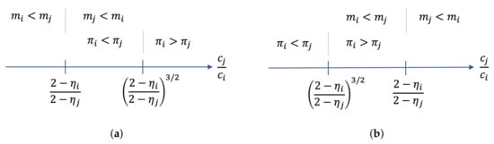 where denotes platform-expected profits in Period 1, and denotes platform-expected profits in Period 2. The parameter is the discount factor. It takes into account that the present value of future profits is lower. Note that the only costs that platform i incurs are investment costs for the infrastructure and technology of its platform, advertising or schooling their employees. We simplify the general model, assuming . Moreover, we assume and .