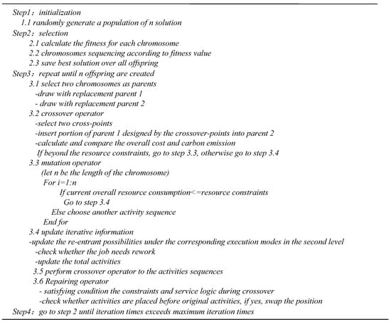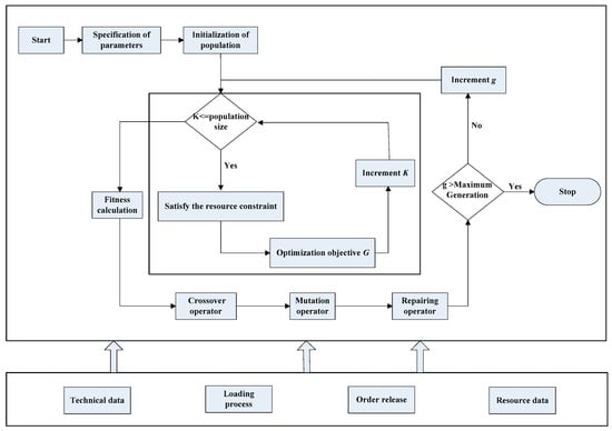 Figure 3 shows the coding procedure of a multilevel genetic algorithm. The repair operator repairs it before it enters the next generation. The repair operator redetects the logic between tasks and checks whether it has been completed before the original scheduling plan. If it has already been performed, swap the new task with the original task’s location.