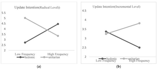 We suggest that the level of update can influence the joint effect of update frequency and product type on customer interest. Using the same logic as the taxonomy of radical new and incremental new products, we further classify app enhancement into two categories: radical updates and incremental updates, based on customer perceptions of the update level of the enhanced product. Hedonic products, as previously shown, cause people to have high expectations for new benefits. The high expectations of customers are unlikely to be met in situations where consumers perceive the incremental update level to be small. Chitturi et al. [42] propose that failure to foster the enhanced expectations of the consumer will lead to disappointments and dissatisfaction. In addition, when what a customer receives does not match what she or he expects, Sivakumar [26] proposes that it will result in a perceived loss. Deductively, we argue that when the update frequency is relatively high, this negative perception becomes even worse.