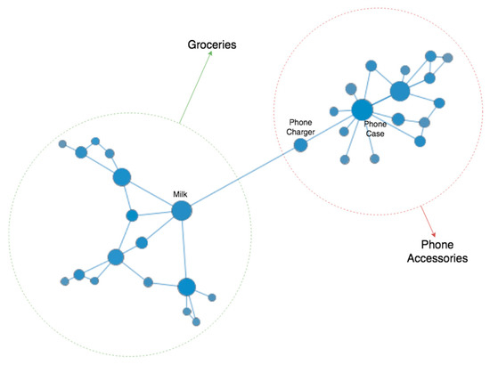 Market basket analysis (MBA) is a frequently used data mining method for such purposes. It discovers the relationship between two products that are frequently purchased together using a technique called association rules [1,2]. Although there have been significant contributions from an MBA point of view, there is a limitation on the method’s effectiveness [3] because of its focus on only the binary relationship between two products. Researchers frequently apply the network science approach to established research fields to overcome its limitations [4]. To address MBA’s binary relationship issue, researchers presented a network analysis [5,6,7] approach that helps to analyze not just the relationship between two products but also a whole network of relationships among all products in the system.