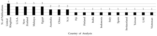 There is another perspective of appraisal related to the countries being analyzed in the sampled papers; the country with the most publications is the United Kingdom, four articles (Figure 1). According to the UK Small Business Statistics [51], there are 5.9 million SMEs in the country. Moreover, these institutions are responsible for three-fifths of employment in the private sector. This indicator reaffirms the significance and importance of these institutions in the economy. Consequently, governments and policymakers must perceive the unique nature of SMEs to promote their growth and survivability, namely in their transition to digital markets. As Ha [12] mentioned, EC adoption requires investment and infrastructures; nonetheless, many SMEs cannot adopt EC due to these barriers. The author also highlights policy and governmental support as fundamental to overcome existing barriers easing the transition into digital marketplaces.