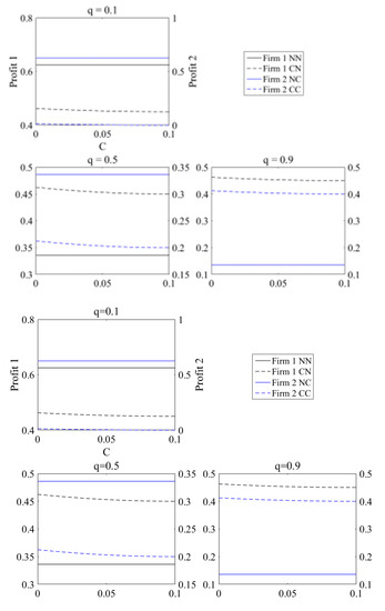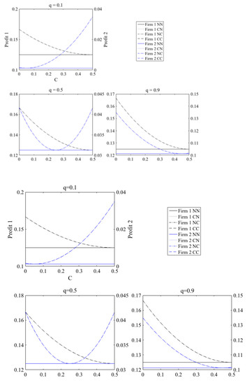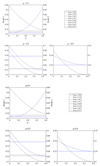 4.3. Subgames (C, NC) and (NC, C) in the Duopoly Model