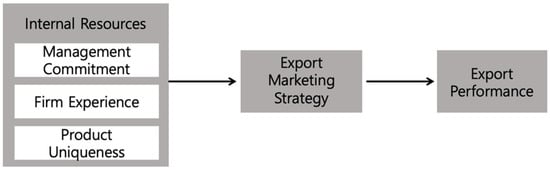 For a high level of export performance, export marketing strategies (EMS) are needed [5]. Researchers on factors that determine the development of EMS, internal resources of firms have been focused as main contributors [6]. Firms’ internal resources, such as managerial commitment, firm experience, and product uniqueness lead the firm to develop EMS enhancing export performance [7,8].