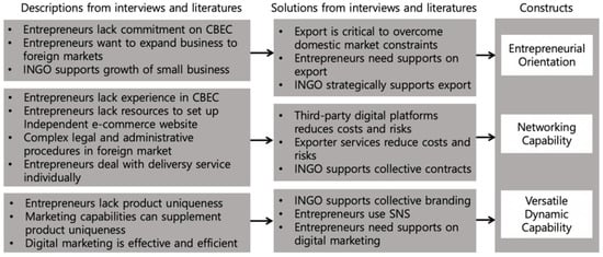 The aim of this paper is to explain how small firms in emerging markets adopt and develop EMS for CBEC with constrained resources. To fill the research gap and better strategize how small business can cope with EMS, we employed recent findings from extant research on small business entrepreneurs. Emerging-market small firms can overcome their constrained resources by leveraging other capabilities [5]. For example, they can rely on entrepreneurs’ capabilities [21,22], mobilize external partners’ resources and apply existing resources in multiple functions. So, this study adopts the concept of dynamic managerial capabilities (DMCs), which contains variations of entrepreneurs’ capabilities, including cognitive capabilities and networking capabilities [23,24,25]. In addition to this, we adopt the concept of resource versatility, which explains multiple uses of existing resources [26] to strategize how small firms adopt to challenges.