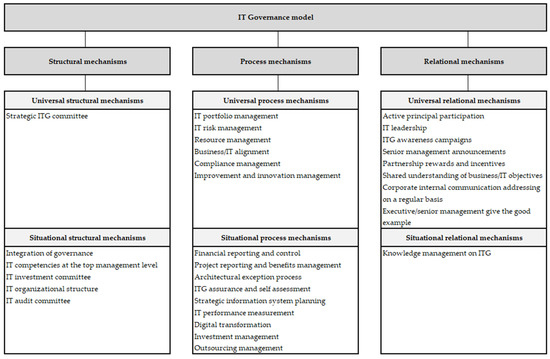 - Levstek, A.; Hovelja, T.; Pucihar, A. IT governance mechanisms and contingency factors: Towards an adaptive IT governance model. Organizacija 2018, 51, 286–310. [Google Scholar] [CrossRef] [Green Version]