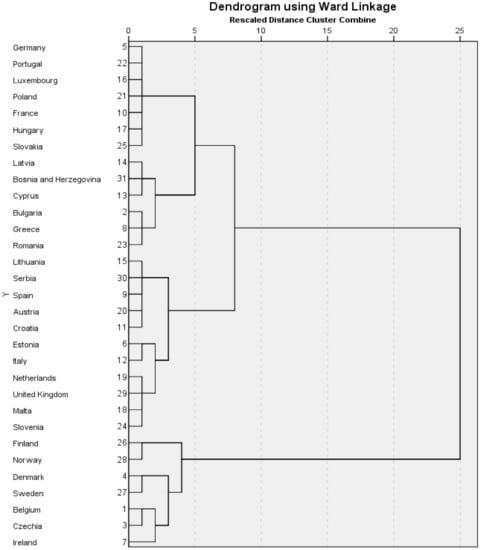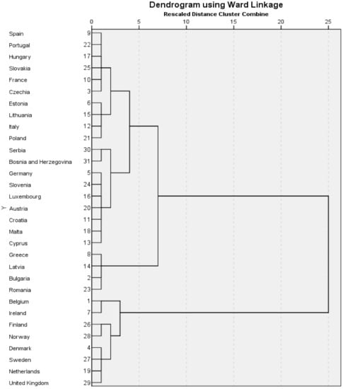 Dendrogram using Ward Linkage method_2020. Source: own elaboration based on Eurostat data [61,62,63,64].
