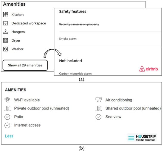 Displays of information disclosure on different sharing platforms. (a) Amenities information displayed on Airbnb. (b) Amenities information displayed on HouseTrip.