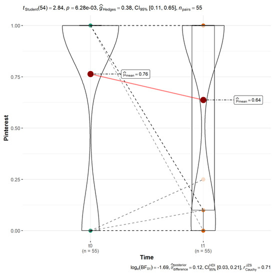 H3 may be tested by performing a paired-samples (repeated measures) t-test (or non-parametric equivalent if t-test assumptions are not met). Because the study only involved two groups, one-way repeated-measures ANOVA provided the same results as the t-test. ANOVA was the analysis procedure used in this study, as there were tools available to provide both numerical and graphical result outputs; in this case, we used the R function ggwithinstats from the ggstatsplot package [63]. For comparison of each indicator, we performed McNemar’s test.