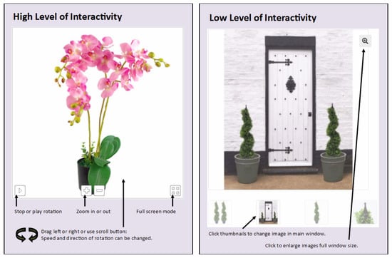 A key factor of online retail success is to obtain the correct balance between visual and textual information, but this needs to be based on product type []. For example, whilst a dress may benefit from multiple images of different angles, the same could not be said for a box of cereal. The results of this study indicate that greater interactivity in home décor products, particularly those which are higher-cost, correlates with increased purchase intention.