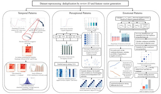 30]. Our investigations from the perceptional and emotional dimensions provide more fine-grained user differentiation and deeper pattern mining to reveal their different service preferences, expression habits and negative momentum. To sum up, some unexpected findings shed light on the diversity of user behavior, such as the relationship between purchase time and reviewing time, the great differences among users’ expressions and the different amounts of emotion momentum, concepts previously examined in a limited way.