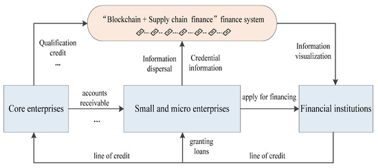 Blockchain has immense potential to transform supply chain functions, including supply chain provenance, business process reengineering, and security enhancement [9]. The endogenous innovative features of blockchain, such as decentralization, consensus trust, collective supervision, smart contracts, being tamper proof, and traceability [4,10,11], can effectively fit the characteristics of multi-agent participation and the transmission of upstream and downstream credit levels by the level of supply chain finance in transactions and operations [12]. Supply chain finance using BT can ensure the tightness and integrity of the transaction data provided by each node of the supply chain, which, meanwhile, also avoids the influence of human factors in the transaction process, and then effectively ensure the efficient operation of supply chain finance [4]. Supply chain finance using BT is an innovative way to realize the financing mode of supply chain finance, which can solve the current problems of financing difficulties and slow financing of SMZEs, as well as the poor flow of financing information and the destruction of isolated islands of financing information in the supply chain, so as to reduce the risks of various financing participants [13].