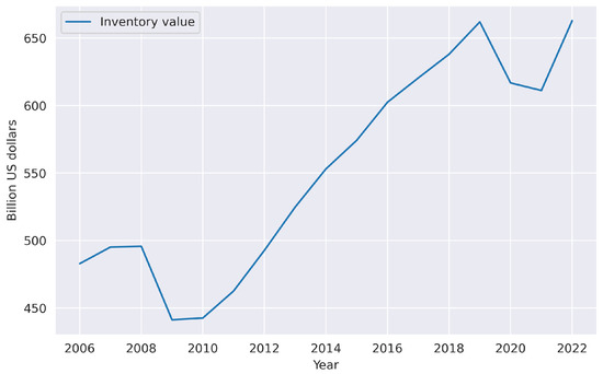 Value of inventories held for sale at the retail level. The figure was produced on the basis of data reported by the U.S. Census Bureau [3].