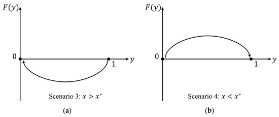 Evolutionary game theory (EGT) is derived to explore the behavior of the large population of boundedly rational agents who repeatedly engage in strategic interactions under incomplete information circumstances [35]. In contrast with classic game theory, EGT has the advantage of analyzing how the game player would dynamically change their own strategic decisions over time through learning and adapting to the other’s strategic decisions [36]. There is a core concept in EGT named evolutionary stable strategy (ESS), which, if adopted by all players, means that the game cannot be invaded by alternative strategies [37]. Several researchers have applied EGT to leasing issues. For example, to study the safety supervision of town crane operation, Chen et al. [38] established a tripartite evolutionary game model, which reveals that when the penalty amount resulting from poor crane supervision is greater than the total safety investment cost, the stakeholders will apply strict supervision strategies to the asset.