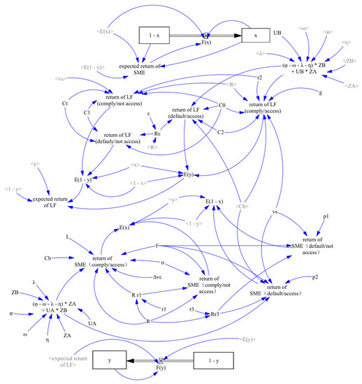Therefore, this study intends to model the problem that considers the SME and LFs individual decision-makers concerning “complying with or defaulting on the LC” and “accessing or not accessing the CBLP” and to comprehensively analyze the dynamic influence of the four factors (i.e., information sharing, credit, incentive–penalty, and risk) on the choice of strategy by using evolutionary games.