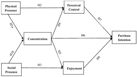 Perceived control is another important element in consumers’ purchase intentions. When consumers are involved in a mediated environment, they often attempt to obtain more control, less effort, and higher efficiency in the process of interactions [,,]. Moreover, with better perceived control, consumers will be able to obtain higher quality information [], which is closely related to consumers’ purchase intentions. It is argued that information quality can improve consumers’ purchase intentions []. Dedeke [] confirmed that there was a positive relationship between information quality and consumers’ purchase intentions. Chen and Chang [] also showed that information quality was an important antecedent of consumers’ purchase intentions. Based on these analyses, it is hypothesized that: