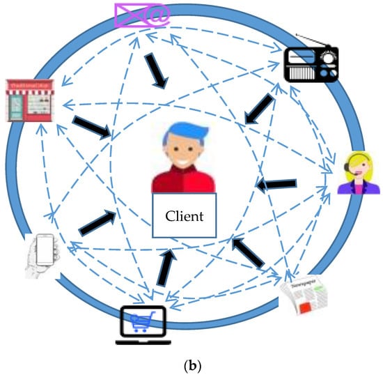 Types of retailing channels: (a) Multichannel retail system; (b) omni-channel retail system. Source: Authors’ own conception, based on [,].