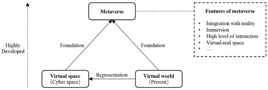 However, metaverse is not strictly a new term. When Neal Stephenson created this term in 1992, from his description of the metaverse, there was a link between the metaverse and the current virtual space [3,4]. Furthermore, several studies have already considered the virtual space and applied it to the entertainment, education and commerce industries, thus revealing the direction of society’s advancement [5,6]. Overall, it is clear that neglecting the virtual space has great impact on our society. With the advancement of digital technology, the virtual space has penetrated into every corner of our society.