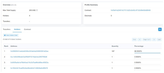 On the token etherscan page, anybody can see that the distribution of tokens has begun but does not know to whom those hexadecimal addresses belong to. Figure 2 presents the situation when the distributor sends three tokens to those addresses. After all the tokens have been distributed, the owner of the SC must have zero tokens.