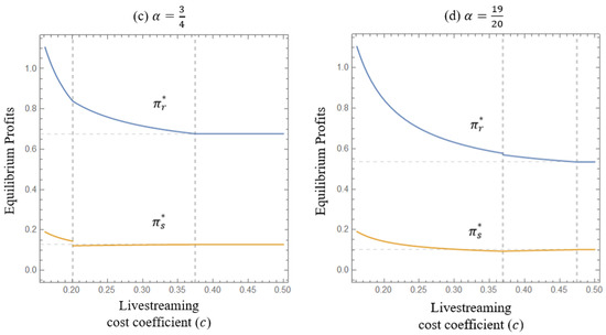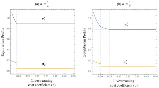 a.1. When the seller can benefit from adopting livestreaming and the retailer can benefit from opening livestreaming to the seller, the retailer adopts livestreaming if . From Equations (4) and (12), when , by solving , we can derive . When , by solving , we can derive .