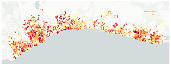 Figure 2 shows the large number of points corresponding to all existing HTPs in the center of the Western Costa del Sol, comprising a total of 8425 dwellings. From all these data, the prestige of this type of establishment is already understood, which is why it is necessary to investigate and work more on it, emphasizing luxury villas, which are the main reason for this research.