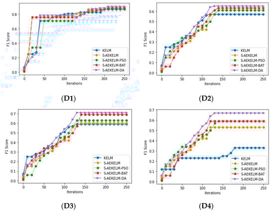 The results tabulated in Table 3 represent the results obtained by the traditional KELM, S-AEKELM, S-AEKELM-PSO, S-AEKELM-BA, and S-AEKELM-DA. by applying the respective evolutionary approaches PSO, BA, and DA. From the results, it is observed that stacked-AEKELM improves classification performances as compared to KELM. It also performs better while integrating the cited evolutionary approaches, wherever S-AEKELM-DA proves exceptional results. Additionally, Table 4 shows the time cost of the AE-KELM using different evolutionary algorithms: PSO, BAT, and DA. The time cost of a model depends on multiple factors, including the size of the dataset, the correlation between its features, and the model architecture itself. In the case of the S-AEKELM-DA approach, including multiple hidden layers in the stacked AE-KELM contributes to a slightly higher time cost than other methods. However, it is essential to note that despite the high time cost, the S-AEKELM-DA approach demonstrates superior performance when compared to other methods such as KELM, S-AEKELM, S-AEKELM-PSO, and BAT-KELM.