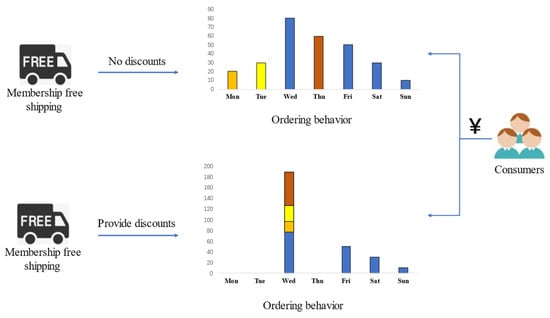 High-sensitivity consumers are more sensitive to online retailers’ special offers, and they will arrange “transferable orders” during the “non-discount period” to make purchases during the “discount period” to enjoy the benefits of the discount. However, low-sensitivity consumers may not care about these offers and will not make such arrangements. Such a business strategy, without affecting the shopping experience of consumers (which improves their shopping experience, i.e., reduces their consumption), reduces the online retailer’s delivery cost or increases its revenue by consolidating some of the orders. Therefore, this is a win–win business operation.
