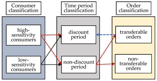 We classify a given sales period as a “discount period” and a “non-discount period”. For example, Tuesday is the discount period, and the rest of the week is the non-discount period in a week. Due to consumer heterogeneity, different consumers respond differently to the online retailer’s limited-time discount.