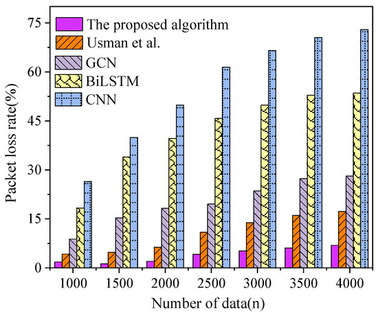 In this section, a comprehensive analysis of the security performance of the proposed model algorithm is conducted, comparing it with GCN, BiLSTM, CNN, and the algorithm presented by Usman et al. (2023) [17]. The evaluation focuses on data transmission security, as illustrated in Figure 10.