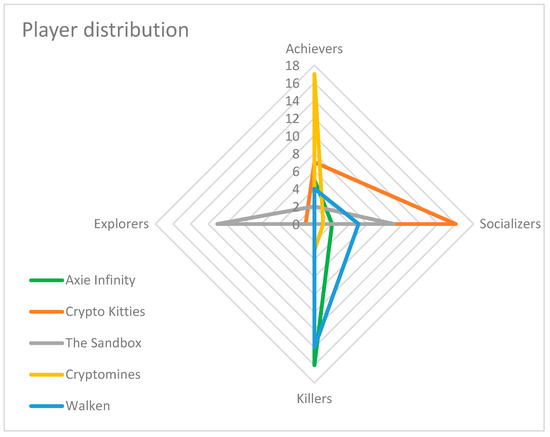 In the context of Web3 player profiling and based on previous studies related to classic video games [43,44], we distinguish among four types of players, which are defined as follows: