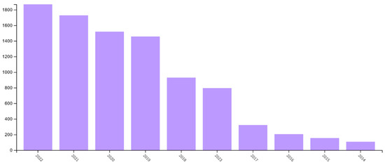The frequency of publications from 2014 to 2022 in descending order. Source: Web of Science.
