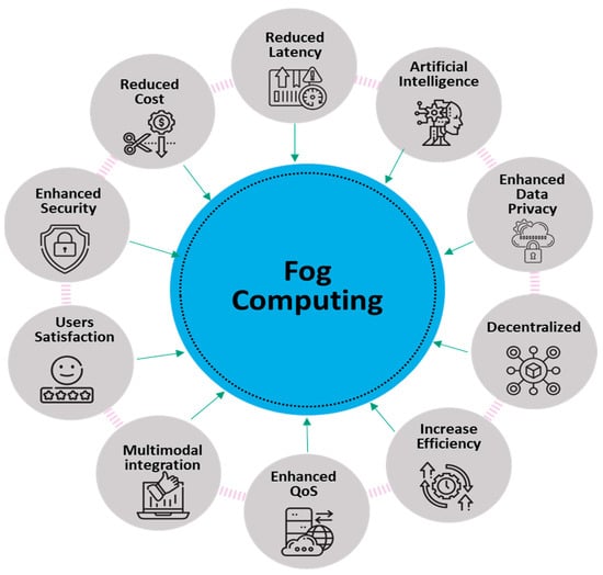 With the FC-enabled IoT “which seeks to support the dream of smart world, it is no longer enough to have only quality of service as it does not satisfy the user experience. As such, quality of experience has now become a key to get user’s satisfaction regarding reliability, availability, scalability, speed, accuracy, and efficiency” [49] (p. 2). FC can be used to support applications and deployments in the IoT, Cloud of Things (CoT), and a number of other applications that demand real-time or predictable latency [50]. Indeed, the adoption of FC has increased rapidly due to recent developments in IoT smart devices and technologies (major marketing/consumer-related smart applications have been compiled in Supplementary S1). However, FC is constantly undergoing modification, and the number of applications administered in fog platforms is expected to grow [34,51]. The new FC structure and use cases are strongly influenced by an array of innovative applications, which demand additional platform attributes, and can only be delivered if the applications are deployed closer to end users, such as in “smart vehicles,” “smart supply chain systems” (Gupta and Singh 2023), “smart healthcare systems” [52] (accessed on 1 October 2023), “smart banking,” and more.