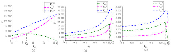 In Model B, based on Proposition 1 and the range of each parameter, clearly there are , , , , , , , , , , , , , , , , , , , , , , , , , , , , , , , , , , , , , , , . Model G, Model R, and Model D have the same conclusions. Thus, Proposition 13 is validated. □