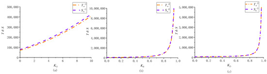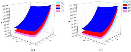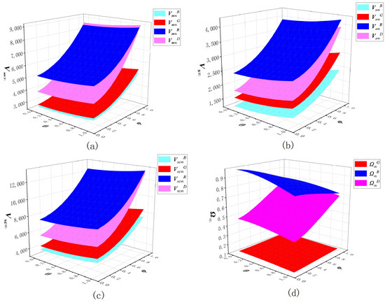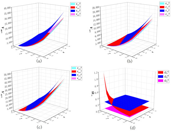To describe the growth of the overall economic benefits of the GSC brought by three incentive mechanisms, the influence degree of the incentive mechanism, represented by , is put forward to indicate how much the profit margin of the GSC improves when implementing the incentive mechanisms in comparison to the non-incentive case [61]. The calculation formula is as follows: