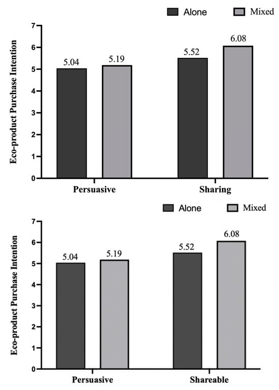 As illustrated in Figure 3, mixed narrative scenarios (Mmixed = 5.99, SD = 0.51) exhibited a more substantial positive effect on consumer purchase intention compared to single narrative scenarios (Malone = 5.35, SD = 0.82) (F (1, 258) = 58.524, p < 0.001). Thus, Hypothesis 2 was confirmed.