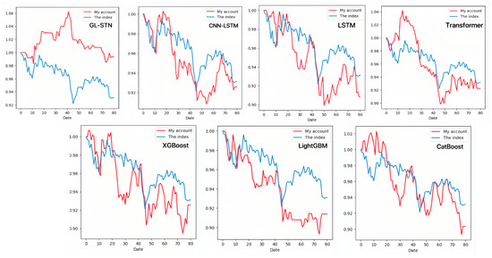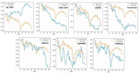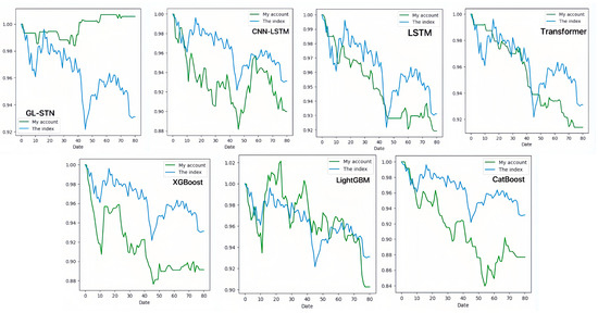 In the science and technology innovation-driven STAR Market, gradient boosting models (LightGBM, CatBoost, XGBoost) show limitations in decision-making quality amidst high volatility. All models exhibit negative periodic returns and an average trade win rate of approximately 0.3837. The Sharpe ratio, Sortino ratio, and information ratio averages of −2.6174, −4.0004, and −0.7846, respectively, underscore the challenges in achieving risk-adjusted returns and generating informative insights, as shown in Table 5.