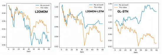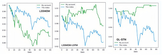 In contrast, the GL-STN model outperforms other models with a positive periodic return metric of 0.0343, demonstrating its performance in maintaining account value stability. Additionally, GL-STN achieves a winning rate of 0.5581, a maximum drawdown of only 0.0221, and significantly high values for the Sharpe ratio and Sortino ratio. The account value change curves of different models, as depicted in Figure 2, visually underscore the GL-STN model’s superior ability to sustain account value in the volatile markets of the Main Board and SME Board. Additionally, the ablation experiments, illustrated in Figure 3, demonstrate the efficiency and robustness of the GL-STN model in navigating market complexities. This is shown through the comparative account value change curves of the models under stringent tests. These experiments, as detailed in Table 3 and Table 4, affirm the GL-STN model’s standout performance and high efficiency.