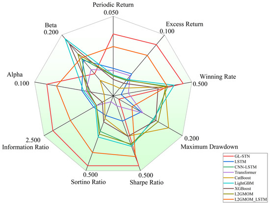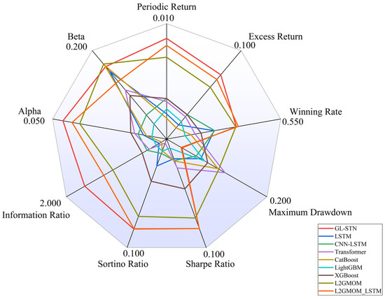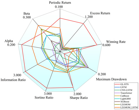 Moreover, Figure 4 provides a radar comparison chart, which succinctly contrasts the comprehensive metrics of various models, highlighting GL-STN’s outstanding performance across multiple dimensions, thereby reinforcing its superiority in navigating the complexities of high-volatility trading environments.